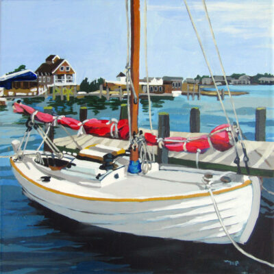 Wooden sailboat docked on a canal off the Gulf Coast. I’ve painted this boat before but this is a different pier and view in general. I wanted to show the shoreline on the other side of the canal. It’s a little bit industrial and a little bit residential. Not uncommon around the Galveston area.